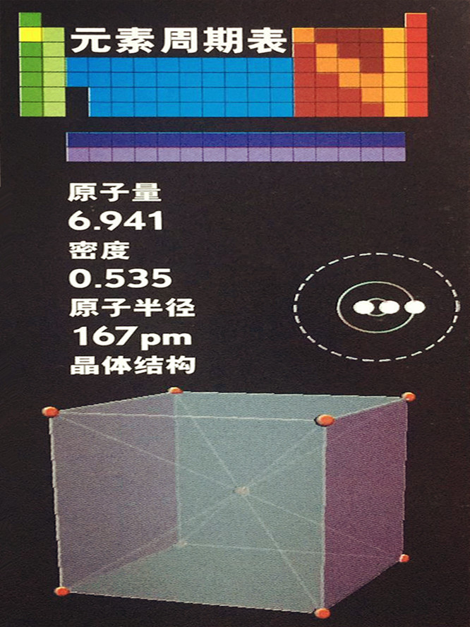 锂是一种非常软、非常轻的金属,轻得能够能浮在水面上,具有如此技艺的仅有的另外两种金属是钠(11)和钾(19)。当它浮在水上时,锂会与水反应并以稳定、适中的速度释放出氢气(这一部分真正令人兴奋的事是从钠开始的)。