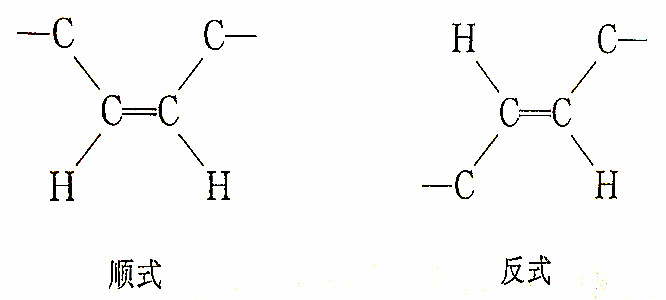 近年来国际上对反式脂肪酸与人体健康进行研究讨论。脂肪酸是组成脂肪的R-基团和羧基—COOH结合形成的RCOOH分子。由饱和脂肪酸组成的油脂室温下呈软固态,称为脂;由不饱和R基团组成的油脂一般以液态油状态存在,当R中含C=C双键,它就会有顺式和反式两种构型: