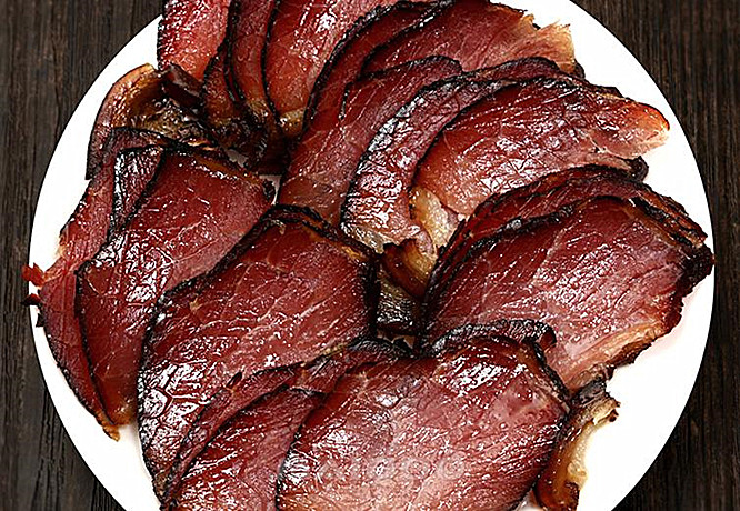腊肉即腊月间腌制的熏肉。临冬猪肥,乡民们便会宰杀年猪。在没有冷藏方法的时代,人们通过腌熏、风干的方法储存猪肉,等到开春之际每家每户便可吃上美味的腊肉。四川腊肉历史悠久,中外驰名,是一道美味可口的汉族名肴,其菜色金黄,肉质红亮,并伴随着阵阵烟香,十分诱人。
