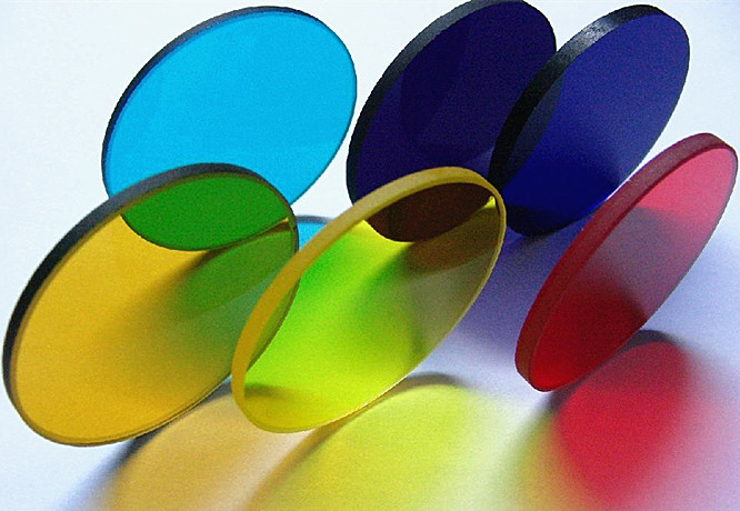 滤光片都标记着该滤光片的波长数值(用mμ单位)。如滤光片上标记着420,即表示这块滤光片为紫色的,而且只能通过紫色光,其它色光能被紫色滤光片吸收。