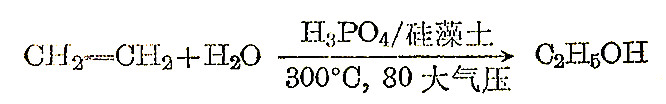 为了从根本上扩大酒精的原料来源,大力发展石油化工,利用石油裂化气中的乙烯进行水合作用来制取酒精,乃是一个很有前途的发展方向。如将乙烯在特定条件下与过量的水蒸汽发生加成反应,可以直接得到酒精:
