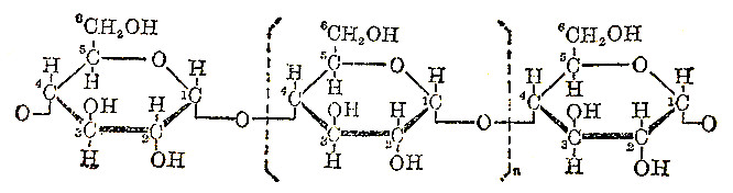 至于纤维素,则是由β-葡萄糖以1,4缩合而成的高分子,其分子量一般比淀粉要大得多。
