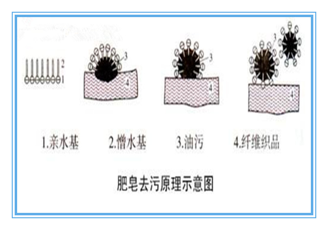 肥皂的去污作用:肥皂的主要成分是苯磺酸钠,是从动 物和植物脂肪中提炼出来的,天然成分较多。即使是香皂,也只是去除了肥皂中的一些杂质,加了点香料而已,所以香皂也是比较天然的洗涤品。并且,用皂类洗涤后排出的污水对环境的影响也较小。洗衣时尤其是洗内衣或宝宝的衣物时,最好用肥皂;平日洗手,如果不是沾上特别难洗的污渍,不妨用香皂;普通的衣物用肥皂稍加揉搓,即可透彻清洁。