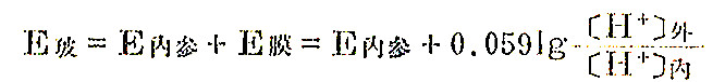 膜内和膜外H+与Na+进行交换,同时,膜表面H+与溶液中的H+也进行交换。由于迁移速度和方向不同,在玻璃膜与溶液相界处,两相界面的电荷分布发生改变产生相界电位E内和E外。在25℃时: