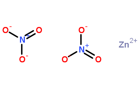 化学性质:硝酸锌分子式N2O6Zn,分子量189.4,无色四方结晶。无气味。105~131℃失去水分。溶于约0.5份水,易溶于乙醇,水溶液呈酸性。5%水溶液的pH 5.1。相对密度 (d14)2.065。熔点约36℃。与有机物接触能燃烧爆炸。有氧化性。有腐蚀性。