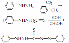 为二苯基硫代卡巴肼。然后,将二苯基卡巴肼加到氢氧化钾的甲醇溶液中,加热回流5~10min,冰水冷却至30℃左右,滤去不溶物,边搅拌边向滤液中加入0.5mol/L的硫酸水溶液至溶液对刚