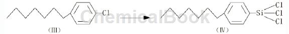 步骤3、按照氯苯(III):三氯硅烷=1:1的摩尔比量取苯基格式试剂(氯苯(III)、Mg和LiCl制备)和三氯硅烷,将取好的苯基格式试剂和三氯硅烷溶解于溶剂(甲苯或正己烷)中,采用少量金属Pd作为催化剂,反应温度为130~135℃,反应1~3小时,提纯后可得到所述化合物(IV)。