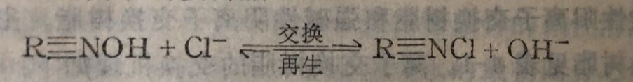 式中R表示离子交换树脂本体,用Na⁺和CI⁻分别代表水中的阴阳离子杂质,交换下来的OH⁻和H⁺结合成水。上述离子交换反应是可逆的。市售的树脂一般为钠型(阳离子树脂)和氯型(阴离子树脂),可用酸碱分别处理成氢型和氢氧型,当原水流过树脂时产生上述交换反应。失效的树脂变为钠型和氣型,分别用酸和碱处理,交换反应向相反方向进行,树脂又转变为氢型和氢氧型,这叫做离子交换树脂的再生。