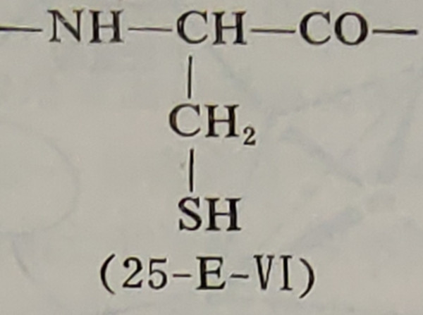 铁原子和活泼的硫原子形成相同种类的二个分离的原子簇(图25-E-3);在高电势铁蛋白(见下文)中早已发现,用一个半胱氨酸的硫原子沿着铁原子四面体的三重轴对每一个铁原子配位。二个原子簇的中心分开约12A。以前根据间接证明(穆斯堡谱、化学性质和磁性)提出了很不同的结构,而这些数据现在必须重新判断。