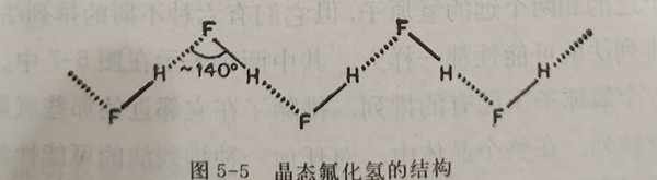 为1.0A(十分典型的参数),看来结构(5-VII b)在整个波函数中只有4%的程度。因此,可以确认多数氢键基本上是静电性的;但这又出现了其它问题。如果未共用的电子对沿杂化轨道方向集中的话,质子会优先地沿着这些方向趋近于Y原子吗?换句话说,这质子把Y原子看作是负电荷的无结构集中呢?还是看作原子偶极呢?这个问题的答案还不完全清楚,因为在多数情况下(5-IX)中的0角与后者的概念一致,这可归因于空间排列的需要,象在羧酸二聚体或邻-硝基苯酚中那样;或用比较简单的理论同样可以得到很好的解释,象在线型聚合体HCN的情形一样。可是,在(HF)n聚合体的情况下,图5-5(和少数其它物质),似乎强有力地支持了优先取向的假设,因为看来没有其它理由能说明为什么其结构不应是线型的。