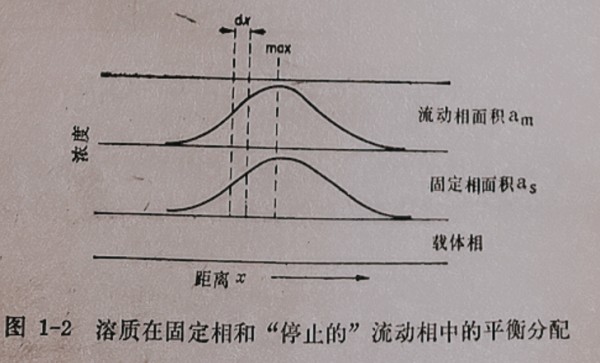 图1-2溶质在固定相和“停止的”流动相中的平衡分配