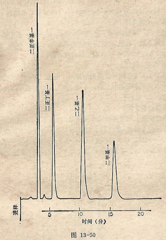 结果 图13-50表示所达到 的分析分离。参看下一个实验中样品量对于分离的影响。对收集的样品进行分析,表明其纯度至少为99%。