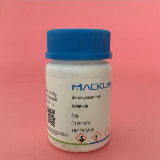 苯甲酰丙酮是一种化学物质,无色结晶。有持久的刺激性气味。易溶于乙醇、乙醚和浓碱溶液,微溶于冷水。相对密度(d604)1.090。熔点61℃。沸点261~262℃。折光率(n77.8D)1.56775。