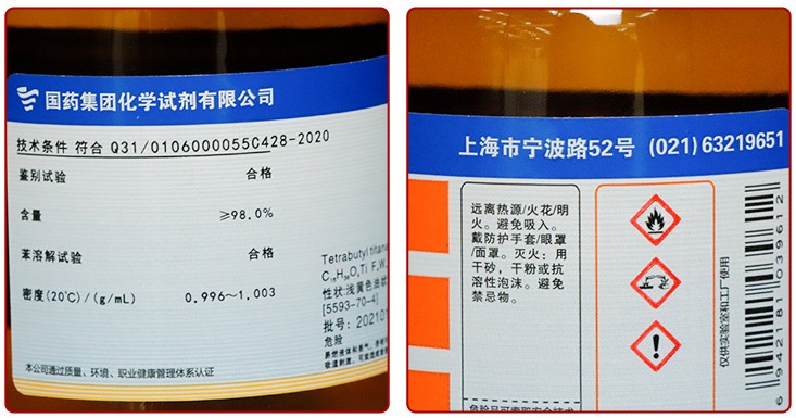 英文名称:Tetrabutyl titanate;Tetrabutyl orthotitanate;Titanium(Ⅳ) butoxide;Orthotitanic acid tetrabutylester