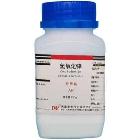 氢氧化锌是一种无机化合物,是两性的氢氧化物。无色斜方结晶或白色粉末。溶于酸或碱,极微溶于水。相对密度3.053。熔点 125℃(分解)。有腐蚀性。