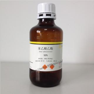 苯乙酸乙酯是一种化学物质,为无色透明液体。有似蜂蜜的气味。溶于8份60%乙醇,不溶于水。熔点-29℃,沸点226℃,135℃(4.27kPa),121℃(2.67kPa),相对密度1.0333(20/4℃),折光率1.4975,闪点77℃。能与乙醇、乙醚、苯和氯仿混溶,不溶于水。有令人愉快的气味。密度:1.03 g/mL at 25 °C(lit.)沸点:229 °C(lit.)熔点:-29 °C闪点:172 °F折射率:n20/D 1.497(lit.)。低毒,半数致死量(大鼠,经口)3300mG/kG。
