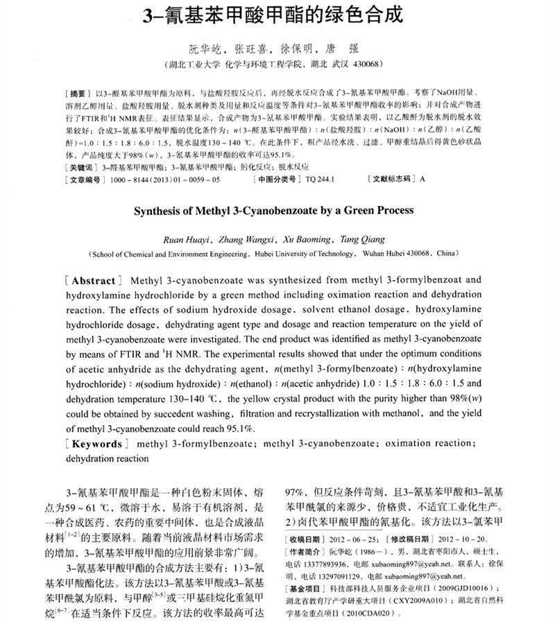 3-氰基苯甲酸甲酯用作有机合成中间体,生化研究。生化技术中防腐、消毒。