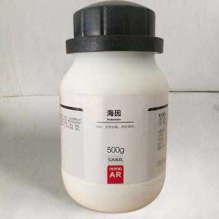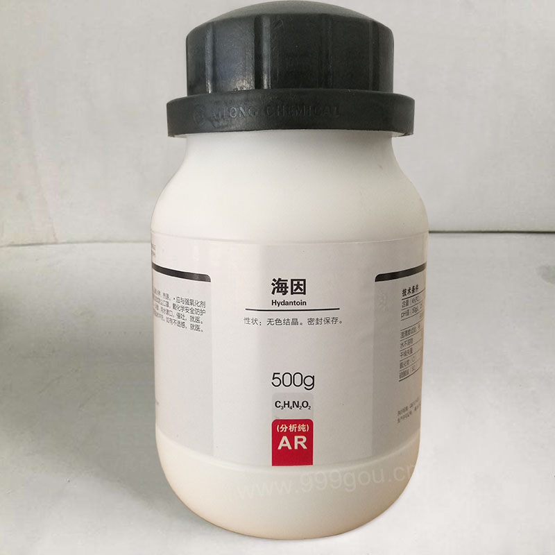 中文名称 海因;内酰脲;乙内酰脲;脲基乙酸内酰胺;2,4-咪唑烷基二酮英文名称 Hydantoin;Glycoylurea;2,4-Imidazolidinedione;2,4-(3H,5H)-Imidazoledione分子式 C3H4N2O2分子量 100.08CAS号 461-72-3危险性质 非危险化学品质检信息质检项目 指标值含量,% ≥98.0%PSA: 58.20000LOGP: -0.51660化学特性海因是一种针状结晶。溶于乙醇和不挥发性碱溶液,微溶于水和乙醚。熔点220℃。乙内酰脲及其化合物可从中药独角莲、蛤蟆油、某些海洋生物及菌类等物质中进行生物提取,也可以根据结构式使用多种方法进行人工合成。由于乙内酰脲的取代部位和取代基团各异,且取代的基团又各具生物活性,基团与基团之间相互作用,导致乙内酰脲类化合物具有多种药理作用。乙内酰脲类化合物药理作用广泛,涉及到神经肌肉系统、呼吸系统、心血管系统、免疫系统、内分泌等系统,具有抗痉挛、抗菌消炎、止咳平喘、降低血糖、抗心律失常、抗肿瘤等药理作用,在治疗炎症、类风湿性关节炎等自身免疫性系统性疾病、慢性阻塞性肺疾病、糖尿病、高血压、肿瘤、惊厥、癫痫症等疾病方面,乙内酰脲类化合物都有很好的应用前景和研究价值。产品用途1.海因可用于化工、医药、纺织、生化等领域。2.海因可用于合呋喃妥因(Nitrofurantoin)和呋喃烯定(Furazidin)。3.海因可用于合成作为抗癌剂的N-苄基aplysinopsin类似物。4.海因可用于合成D-谷氨酸基抑制剂。5.海因可用于合成糖尿病的色酮基-2,4-噻唑烷二酮及对大脑通透性的GSK-3β抑制剂。6.海因可用作PGDH抑制剂的噻唑烷二酮衍生物及放射增敏试剂。7.海因可用于有机合成。储存方式海因应密封保存,放置于通风、干燥地方,避免于其他氧化物接触。