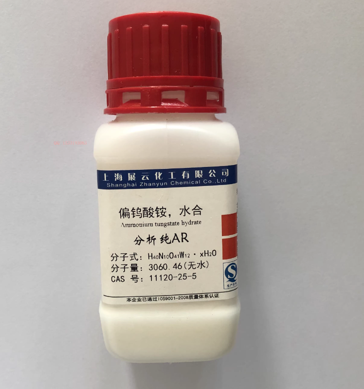 中文名称:偏钨酸铵,仲钨酸铵英文名称 Ammonium paratungstate 99.99% trace metals basis;分子式: W分子量: 3042.5601CAS号: 11120-25-5质检信息质检项目 指标值含量,% ≥99.95%精确质量: 2975.44000PSA: 603.47000LogP: -2.48010危险性质 非危险化学品化学特性偏钨酸铵是一种化学水合物,白色结晶或粉末。易溶于水,且在水中的溶解度为0.1g/mL,几乎不溶于乙醇。熔点:100ºC。