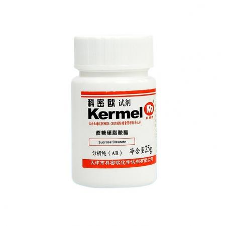 制备方法无溶剂法将硬脂酸乙酯(或甲酯)和表面活性剂的水溶液加热至100℃,搅拌,并加入0.15mm以上的糖粉;待全部的水被真空蒸发完后,加入催化剂碳酸钾粉末,在90~160℃下减压反应,生成的乙醇(或甲醇)被蒸出;用15%的食盐水溶解粗蔗糖酯中的蔗糖和催化剂,过滤,再用乙醇除去未反应的硬脂酸乙酯(或甲酯)即得产品。SNELL法(DMF法)将蔗糖与脂肪酸甲酯按3:1的摩尔比混合,以二甲基甲酰胺(DMF)为溶剂,K2CO3为催化剂,在90~95℃下减压回流12h,不断排出反应生成的甲醇;反应结束后,减压回收二甲基甲酰胺,用石油醚抽提未反应的脂肪酸甲酯;用10%的食盐水溶解未反应的蔗糖,再加入异丁醇抽提蔗糖酯,醇相脱去溶剂后得粗产品,再经丙酮重结晶后得白色粉状产品。微乳化法将蔗糖溶于丙二醇得蔗糖溶液,加入乳化剂硬脂酸钠和催化剂无水碳酸钾,在100~140℃和14.5~21.1kPa时,与硬脂酸乙酯反应6~8h,投料比为蔗糖:硬脂酸乙酯:无水碳酸钾:硬脂酸钠:丙二醇=1:0.6:0.01:0.5:900(Ml),反应过程中不断地蒸出乙醇和丙二醇,边反应边脱溶剂,溶剂脱完后继续反应一段时间即得蔗糖酯粗品;用丙酮溶解粗产品,过滤,滤液用酸酸化后冷却至5~10℃,析出结晶后真空干燥得纯净蔗糖酯,转化率为98%。