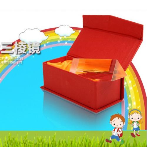 什么是三棱镜?三棱镜是光学上横截面为三角形的透明体。它是由透明材料作成的截面呈三角形的光学仪器,属于色散棱镜的一种,能够使复色光在通过棱镜时发生色散。光从棱镜的一个侧面射入,从另一个侧面射出,出射光线将向底面(第三个侧面)偏折,偏折角的大小与棱镜的折射率,棱镜的顶角和入射角有关.白光是由各种单色光组成的复色光;同一种介质对不同色光的折射率不同;不同色光在同一介质中传播的速度不同.所以,因为同一种介质对各种单色光的折射率不同,所以通过三棱镜时,各单色光的偏折角不同。因此,白色光通过三棱镜会将各单色光分开,形成红.橙.黄.绿.蓝.靛.紫七种色光即色散。各色波长如下(纳米):红:660橙:610黄:570绿:550蓝:460靛:440紫:410