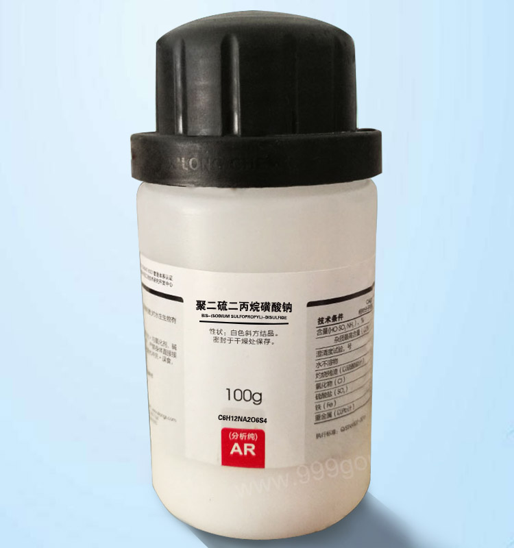 中文名称 聚二硫二丙烷磺酸钠中文同名 3,3’-二硫代双-1-丙磺酸二钠盐;英文名称 Bis-(sodium sulfopropyl)-disulfide化学式 C6H12Na2O6S4分子量 354.4CAS编号 27206-35-5