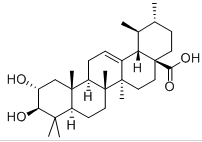 化学特性科罗索酸为白色无定型粉末,为巴拉巴提取物、大花紫薇提取物,属α-香树脂醇型或乌斯烷型五环三萜类化合物,可溶于石油醚、苯、氯仿、吡啶等有机溶剂,不溶于水,可溶于热乙醇、甲醇。在无水条件下,与强酸(硫酸、磷酸、高氯酸)、中强酸(三氯乙酸)或Lewis氏酸(氯化锌、三氯化铝、三氯化锑)作用,会出现颜色反应或萤光。