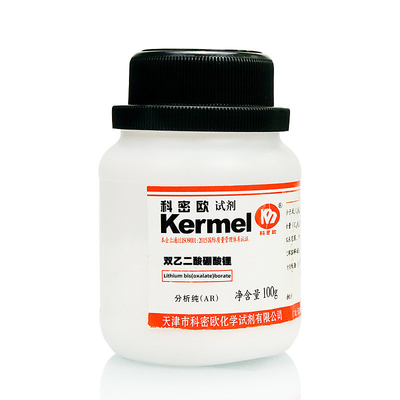 产品用途双乙二酸硼酸锂用作材料科学。一种新的和专有的导电盐为使用在高性能电池像锂电池,锂离子电池聚合物、锂电池。电解液中对锰酸锂及三元掺锰电池中锰的溶解有较明显的抑制作用。