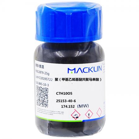 化学特性聚(甲基乙烯基醚共聚马来酸)是一种化学物质,甲基乙烯基醚和马来酸酐交替共聚物的水解酸,白色到浅黄色粉末,沸点355.5ºC at 760 mmHg闪点183ºC蒸汽压5.19E-06mmHg at 25°C无气味,对光敏感。易溶于水、乙醇、氯仿,微溶于乙醚,醇、酚、醛等有机溶剂,形成有粘性的溶液,可形成高度极性的光滑薄膜;与盐反应可调节溶液的流变性;具有良好湿粘合强度,具生物粘附性,对环境无危害,低毒性。
