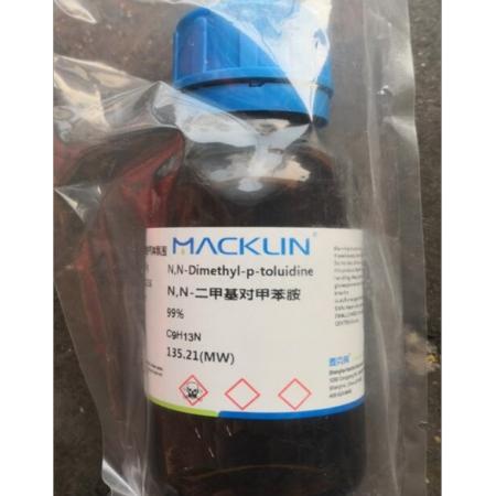 化学特性N,N-二甲基对甲苯胺是一种化学物质,淡黄色液体,密度0.937 g/mL at 25 °C(lit.)沸点211 °C(lit.)熔点-25°C闪点182 °F折射率n20/D 1.546(lit.)蒸汽密度>1 (vs air)对空气敏感。不溶于水,溶于醚、乙醇和氯仿。可燃,有毒,对器官有危害。对水体有高度危害。芳香叔胺特别是N,N-二甲基对甲苯胺是丙烯腈(AN)聚合有效的光引发剂。介质对聚合速度的影响极性大,聚合速度快,氧对聚合有明显的影响,随氧含量增加聚合诱导期增加,速度下降。N,N-二甲基对甲苯胺通常被认为烯类聚合的缓聚剂,而不是丙烯腈(AN)的光聚合引发剂。