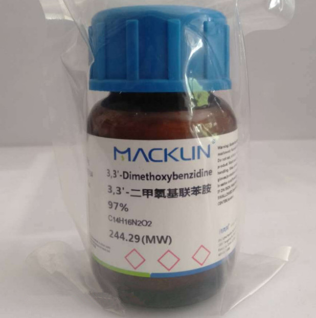 产品用途3,3'-二甲氧基联苯胺用作检定钴、铜、金、钒、硫氰酸盐,测定金和亚硝酸盐、氧化还原指示剂、络合指示剂、偶氮染料制造,染料中间体。