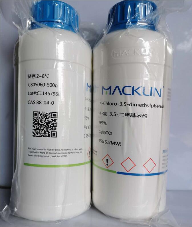 产品用途4-氯-3,5-二甲基苯酚用作化学合成;防腐剂;杀菌剂,应用于乳剂、化妆品、油墨、胶合板、塑料中,作为塑料用防霉剂,特别适用于硬质和半硬质聚氯乙烯板材、人造革等,医药上常用皮肤消毒剂。