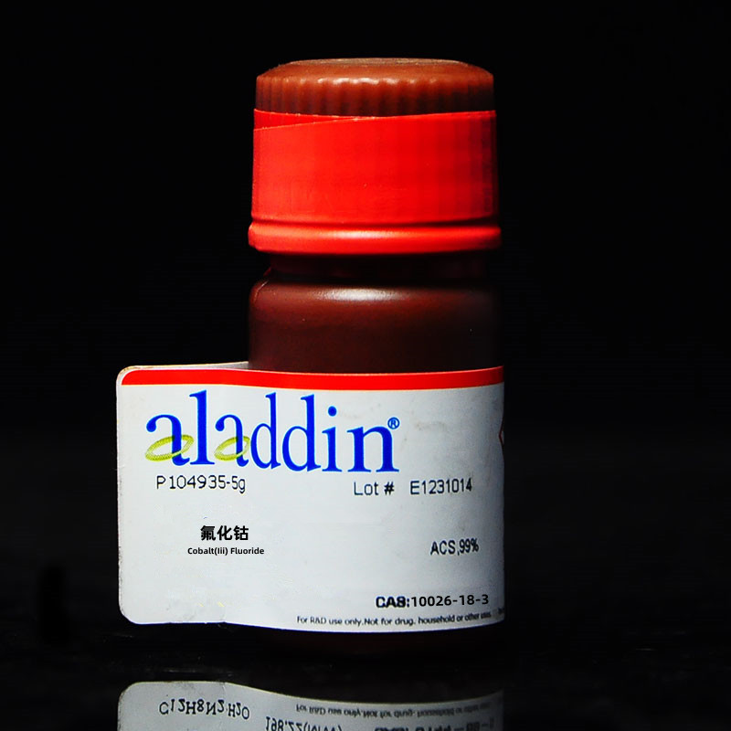 氟化钴又称三氟化钴是一种无机化学物质,为微红的结晶粉末,微溶于水,溶于盐酸、硫酸、硝酸;密度:3.88 g/mL at 25 °C(lit.)沸点:19.5ºC at 760mmHg熔点:926±200º C蒸汽压:922mmHg at 25°C有辛辣气味,对湿敏感。在潮湿空气中变为暗褐色。与水反应,是非常强的氟化剂和氧化剂。室温下为不稳定的浅棕色易潮解固体,密度为3.88g/mL(25℃),溶于水放出氧气,是很常用的氟化剂。在CO2气流中加热到250℃时,开始放出F2,在350℃时,则完全转变为CoF2。与氟同族的氯也可生成钴的二元化合物,但很不稳定,三氧化二钴溶于盐酸时便会有氯气放出。溴化钴及碘化钴从未制得。三氟化钴可以与许多金属或非金属单质反应生成相应的氟化物,自身被还原为二氟化钴。三氟化钴也有水合物,CoF3·3.5H2O,但结构尚不清楚;具腐蚀性,有致癌可能性。