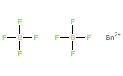 化学特性氟硼酸亚锡是一种化学物质,为无色水溶液。pH <7。密度 ρ(20)1.670g/mL(50%)呈微碱性,易溶于水,密度1 .65g/cm3,遇水易分解,水溶液中含有一定游离酸而呈酸性。长期暴露于空气中易氧化。具腐蚀性。由锡片与氟硼酸在通入空气情况下反应,过滤除去杂质得氟硼酸亚锡溶液。亦可由锡片做阳极,在含42%的氟硼酸和3%硼酸的电解液中,于35°C进行电解得氟硼酸亚锡溶液。