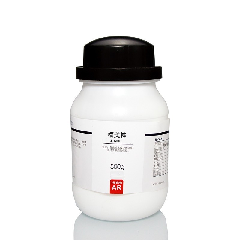 化学特性二甲基二硫代氨基甲酸锌又称福美锌是一种化学品,为灰白色粉末,25℃时100mL溶剂中溶解度:乙醇<0.2g、丙酮<0.5g、苯0.5g、四氯化碳<0.2g、乙醚<0.2g、石油醚<0.5g。熔点 248-257℃。密度 ρ(25)1.66g/mL。福美锌是一个锌与二甲基二硫代氨基甲酸的配合物,几乎无气味。溶于稀碱溶液、氯仿和二硫化碳,微溶于醚、苯、丙酮和乙醇,极微溶于己烷,不溶于水。有害,吸入致命,具眼腐蚀、刺激性和致敏性,对器官有危害。对水体有高度危害。
