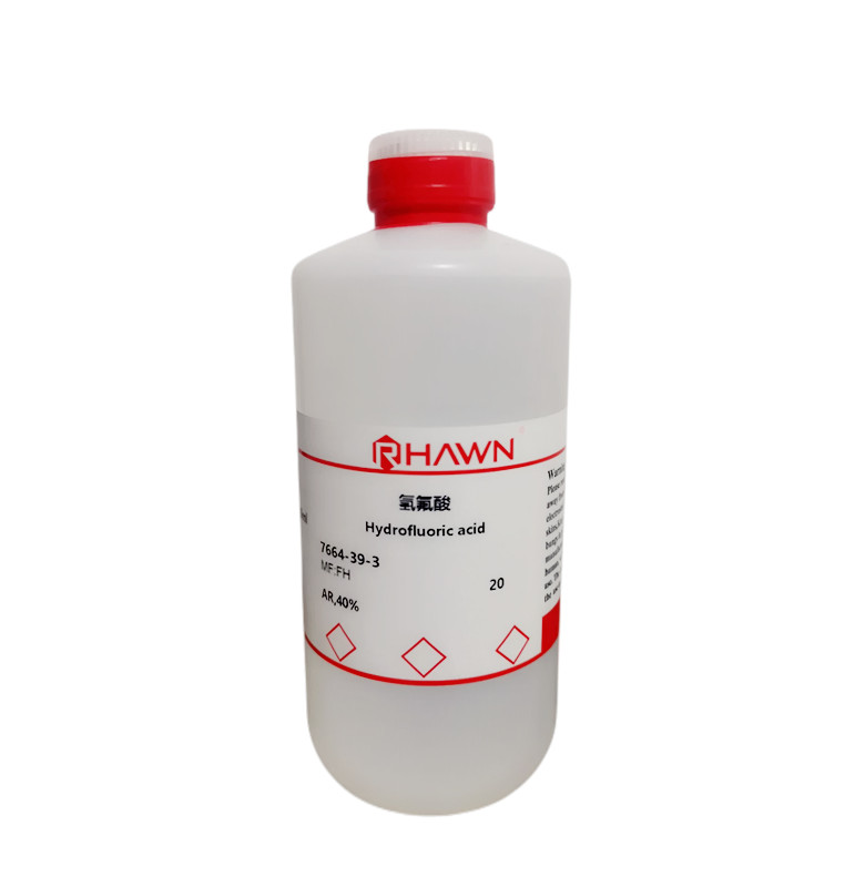 氢氟酸是氢的氟化物,有强烈的腐蚀性,有剧毒。它是无色的气体带有一种辛辣气味,商品为40%的水溶液,密度:1.15 g/mL at 25 °C(lit.),熔点:-35°C,沸点:105°C,闪点:112°C在空气中,只要超过3ppm就会产生刺激的味道。 氢氟酸是氟化氢的水溶液,可以透过皮肤黏膜、呼吸道及肠胃道吸收。若不慎暴露于氢氟酸,应立即用大量清水冲洗20至30分钟,然后以葡萄酸钙软膏或药水涂抹,并紧急送医处理;若不小心误饮,则要立即喝下大量的高钙牛奶,然后紧急送医处理。