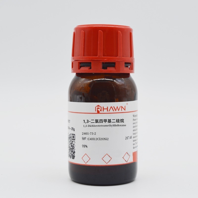 化学特性1,3-二氯四甲基二硅烷又称1,3-二氯-1,1,3,3,-四甲基二硅氧烷是一种化学物质,为透明无色液体,密度:1.039 g/mL at 25 °C(lit.)沸点:138 °C(lit.)熔点:-37 °C闪点:15 °C折射率:n20/D 1.407(lit.)蒸汽压:8.53mmHg at 25°C对湿敏感。易燃,具眼腐蚀。
