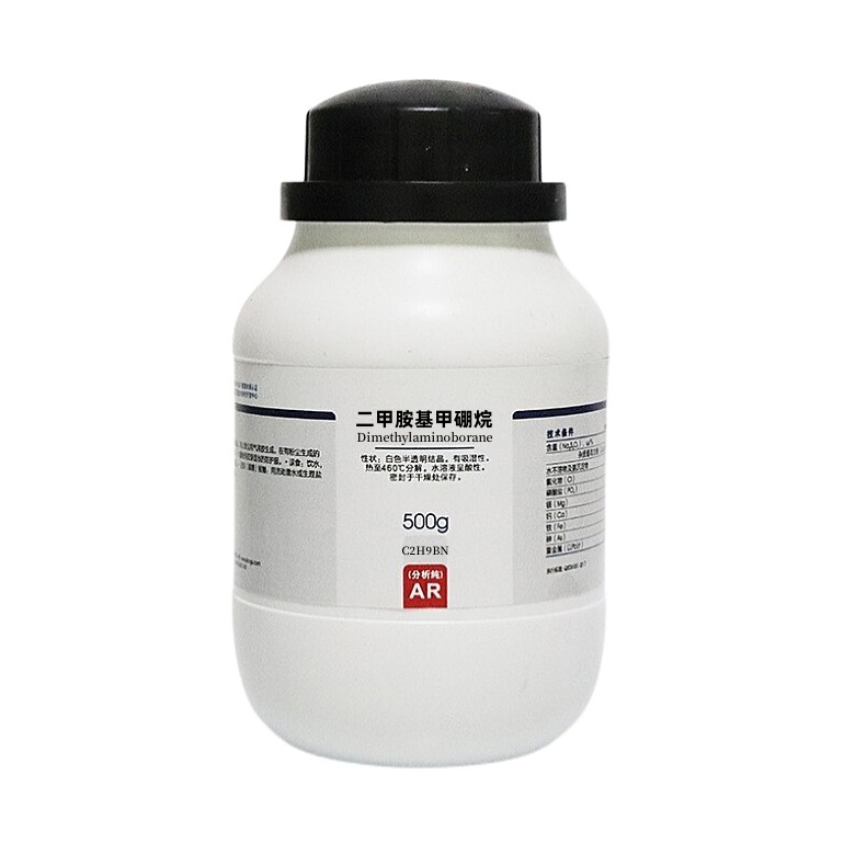 化学性质二甲胺基甲硼烷又称硼烷二甲胺络合物是一种还原剂,由硫和铁2种元素形成的化合物,为白色结晶固体,密度:0,69 g/cm3沸点:59-65°C 12mm熔点:36 °C(lit.)闪点:110 °F水溶解性:125 g/L (20 ºC),pH 8-9(10g/L,H2O,20℃)。略有氨气味,易吸潮。溶于水、甲醇、乙醇、2-丙醇、四氢呋喃、苯、二甲苯、N-HEX、氯苯和二甘醇二甲醚。稳定性:稳定,但对水敏感。与水接触释放出非常易燃的气体。与酸、卤素、氧化剂、水不相容。储存条件:0-6ºC