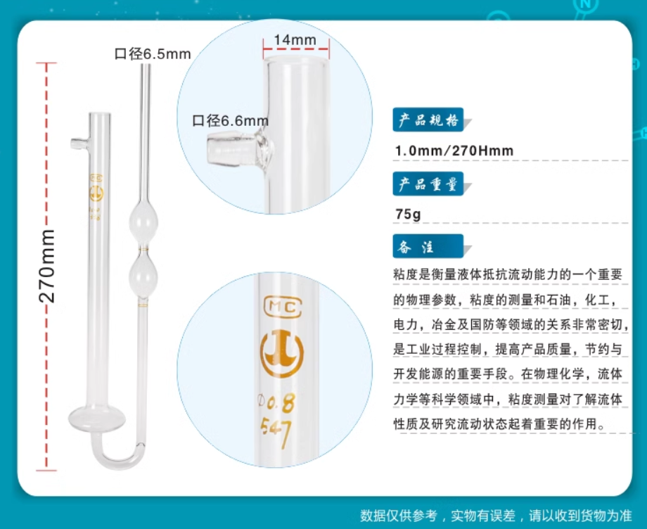 毛细管式粘度计通常为赛氏粘度计,是一种常见的粘度计。其工作原理是:样品容器(包括流出毛细管)内充满待测样品,处于恒温浴内,液柱高度为h。打开旋塞,样品开始流向受液器,同时开始计算时间,到样品液面达到刻度线为止。样品粘度越大,这段时间越长。因此,这段时间直接反映出样品的粘度。