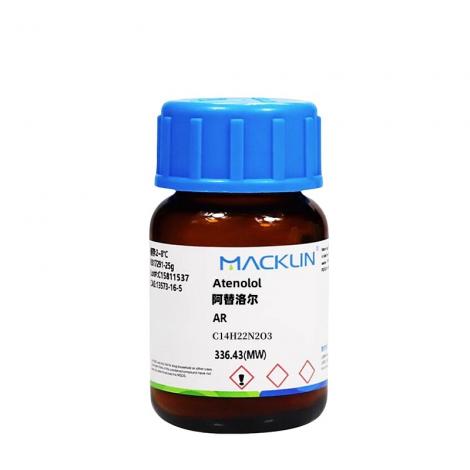 生物活性Atenolol(Tenormin,Normiten,Blokium)是一种选择性的β1receptor拮抗剂,对人源β1-,β2-和β3-肾上腺受体的logKd值分别为−6.66±0.05,−5.99±0.14,−4.11±0.07。