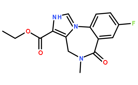 生产方法方法1:5-氟靛红在冰醋酸和浓硫酸中,用30%过氧化氢氧化,得黄色固体的6-氟靛红酸酐,收率82%。然后和肌氨酸(即N-甲基甘氨酸)在二甲亚砜中,于100℃反应,得化合物(Ⅰ),收率80%。再在氯仿中,N,N-二甲基苯胺存在下,和三氯氧磷回流。氯化所得化合物(Ⅱ)经处理后,在二甲基甲酰胺中,叔丁醇钠存在下,和氰基醋酸乙酯反应,得氟马西尼,收率40%,熔点200~203℃。 1.第一个苯并二氮杂革类药物的拮抗剂,用于对抗苯并二氮杂革类药物超剂量使用后的镇静作用及定向障碍,并具有抗惊厥活性和抗癫痫作用。