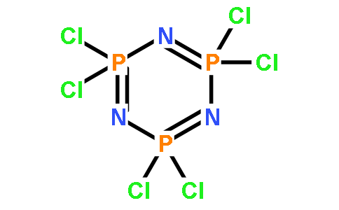 化学特性六氯三聚磷腈是一种白色结晶固体该物质由 五氯化磷 与 氯化铵 在氯苯溶剂中反应生成,熔点112~115℃,沸点127℃。其核心结构由三个磷原子与六个氯原子通过磷氮键连接形成环状结构,属于 有机磷化合物类,对湿敏感。270℃以上分解。遇水分解。
