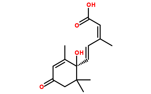 (+)-脱落酸中文名称:(+)-脱落酸英文名称:(+)-Abscisic acid别名:(S)-5-(1-羟基-4-氧代-2,6,6-三甲基-2-环己烯-1-基)-3-甲基-(2Z,4E)-戊二烯酸;ABA,休眠素;(S)-(+)-脱落酸;休眠素;脱落酸;S-(+)-脱落酸;脱落酸(S-ABA);诱抗素;分子式: C15H20O4分子量: 264.32CAS编号:21293-29-8