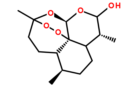 化学性质双氢青蒿素是一种青蒿素衍生物,为白色结晶,无气味,味苦,对空气和热敏感。易溶于氯仿,溶于乙醇、二氯甲烷、丙酮,微溶于乙腈、甲醇,几乎不溶于水。pH 6.0-7.0,密度:1.24,沸点:375.6ºC at 760 mmHg,熔点:144-149ºC,闪点:181ºC,冷藏品-2-8℃。