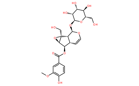 化学性质胡黄连苷II又称胡黄连苷2是一种有机化合物,该物质为从胡黄连中提取的环烯醚萜类化合物,为黄色粉末,天然品来源于胡黄连,溶于乙醇和乙醇,密度:1.66 g/cm3,沸点:780.8ºC at 760 mmHg,闪点:267.9ºC,折射率:1.681,冷藏品-2-8°C, 避光,对环境无危害。