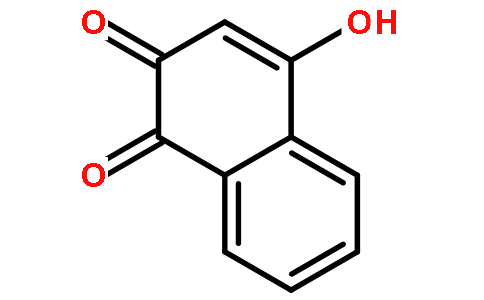 化学性质2-羟基-1,4-萘醌又称2-羟基对萘醌是一种无毛劳森叶提取物的活性成分,为亮黄色棱柱状结晶粉末,λmax:452nm。溶于水、冰醋酸,密度:1.46 g/cm3 (25ºC),沸点:339.908ºC at 760 mmHg,熔点:192-195°C (dec.)(lit.),水溶解性:2 g/L (20 ºC),冷藏品-2-8℃,具刺激性。