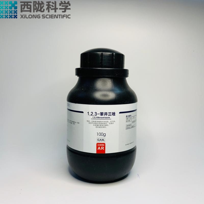 苯并三唑又名苯丙三氮唑是一种有机化合物,白色至浅褐色针状结晶。无气味。熔点98.5℃(100℃)。沸点204℃。闪点约170℃。在空气中氧化而逐渐变红。在真空中蒸馏时能发生爆炸。溶于乙醇、苯、甲苯、氯仿和N,N-二甲基甲酰胺,微溶于水。1,2,3- 苯并三唑分为油溶性苯并三唑和水溶性苯并三唑。其中水溶性苯并三唑是可以用水溶解,也可以用溶剂来溶解。