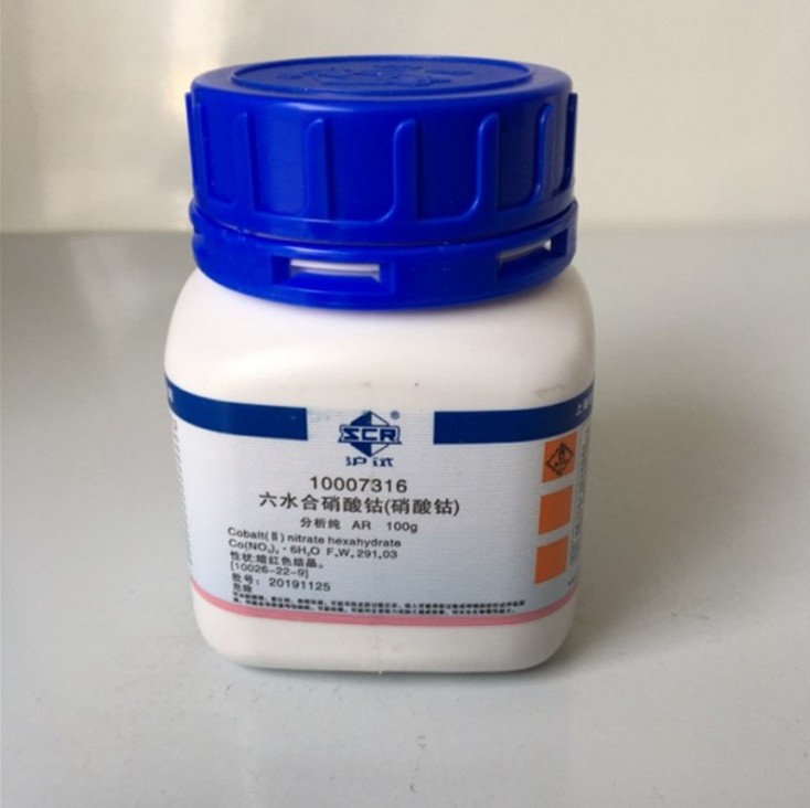 硝酸钴是红色单斜结晶。有吸湿性。约在55℃熔成红色液体,74℃以上分解成绿色氧化物。易溶于水、乙醇和多数有机溶剂。相对密度1.88。有氧化性,与有机物摩擦或撞击,能引起燃烧或爆炸。低毒,半数致死量(大鼠,经口)691mg/kg。有刺激性。